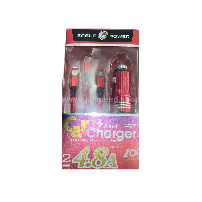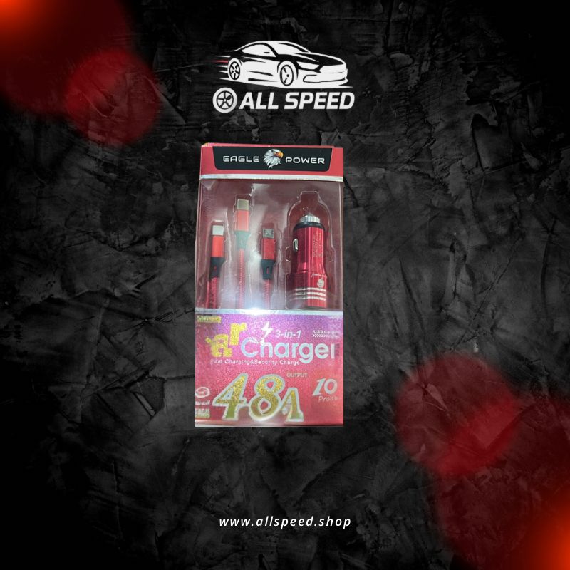 High-speed multi-functional car charger with three built-in charging cables for different devices, perfect for fast charging while driving.